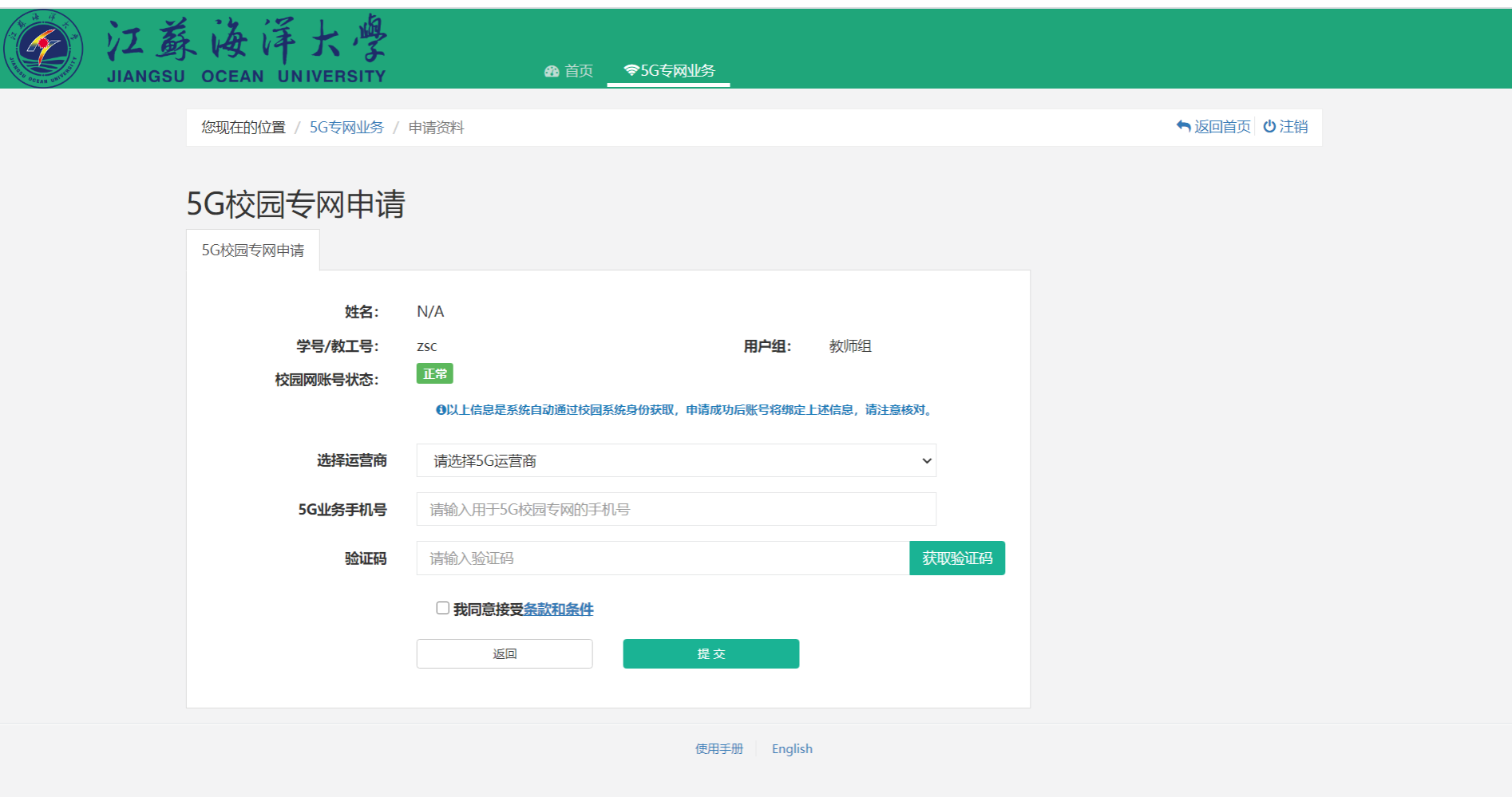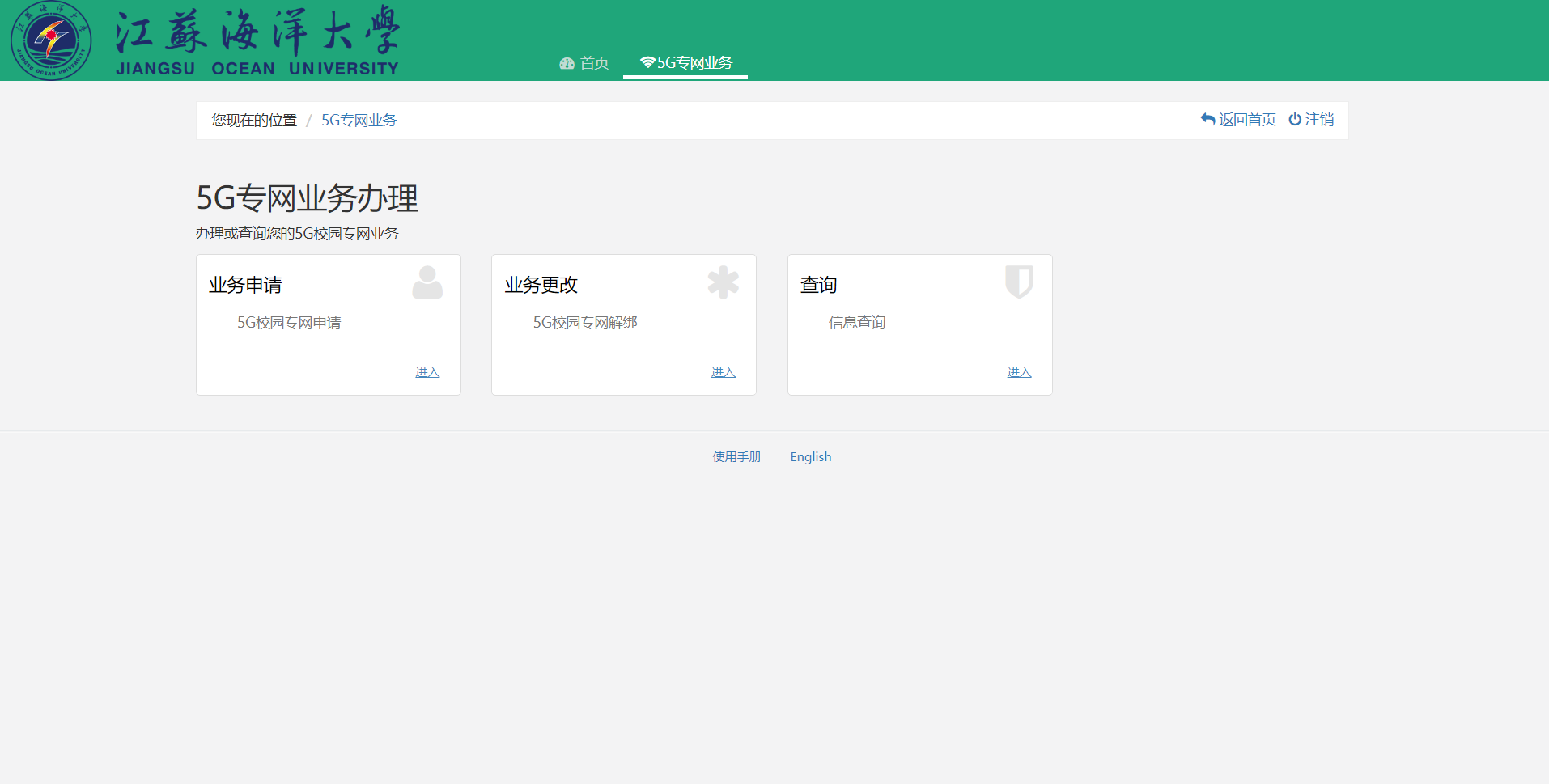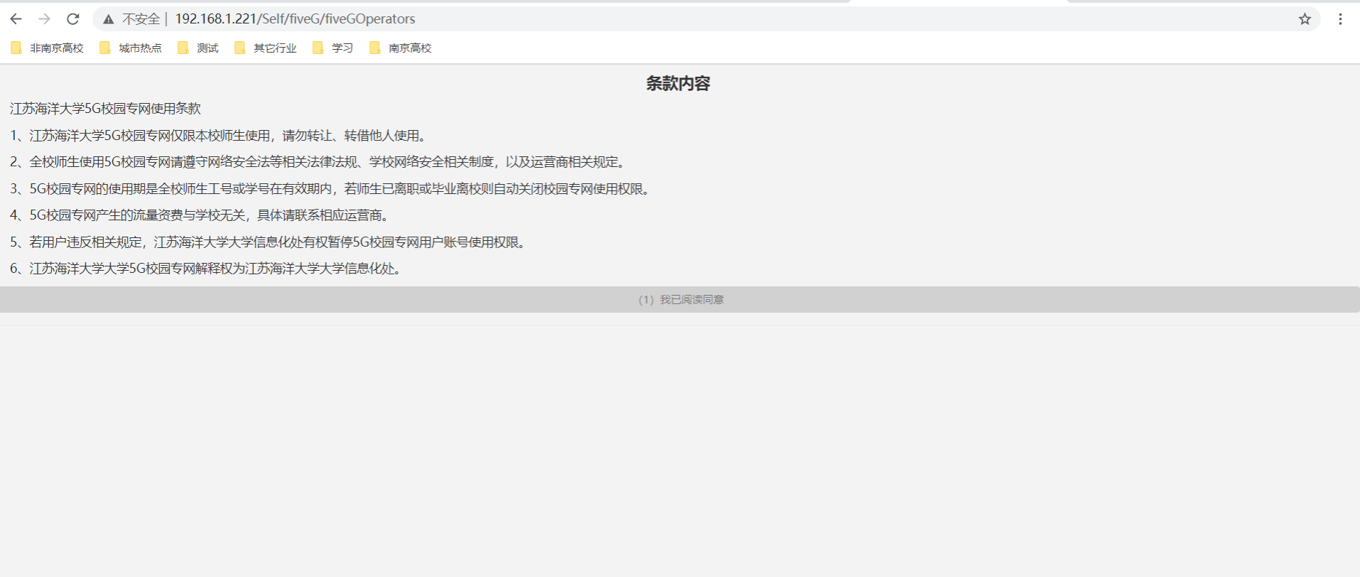 在提交申请过后会点击如图7所示的链接,选择江苏海洋大学,在运营商侧再次进行申请,具体审核结果会通过短信进行推送。