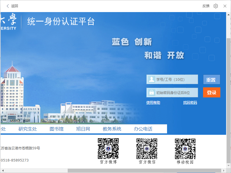 (3)跳转到学校统一身份认证中心,输入学/工号和密码登录。