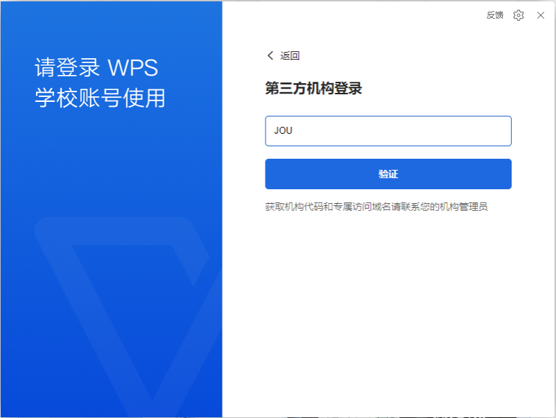 (2)登录界面选择「更多登录方式」-「第三方企业」,输入学校代码JOU,点击「验证」。