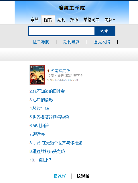 (5)读者可以选择期刊、图书等栏目,并输入检索关键字进行检索,即可下载相关资料,或利用文献传递发至个人邮箱里。