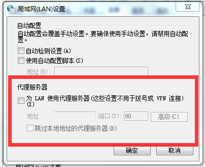 下面介绍的两种方法,都不能使用代理服务器。请检查电脑是否有设置代理服务,如果有设置,请取消(请勿勾选)。如下图: