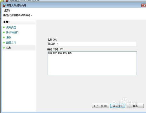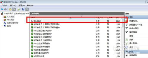 9、然后点击入站规则就可以显示之前设置的规则了,说明135,137,138,139,445等端口关闭已经生效了。