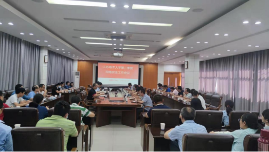 2021年9月24日,校2021年第三次网络安全会议在文渊楼会议室召开。各学院党委书记、机关职能部门主要负责人、各网站及信息系统管理员、信息化处班子及相关人员60余人参加了此次会议。会议由信息化中心主任黎汉杰主持,学校党委副书记史顺良出席会议并总结发言。